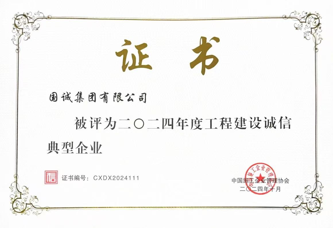 國誠集團(tuán)榮獲“2024年度工程建設(shè)誠信典型企業(yè)”稱號(hào)!