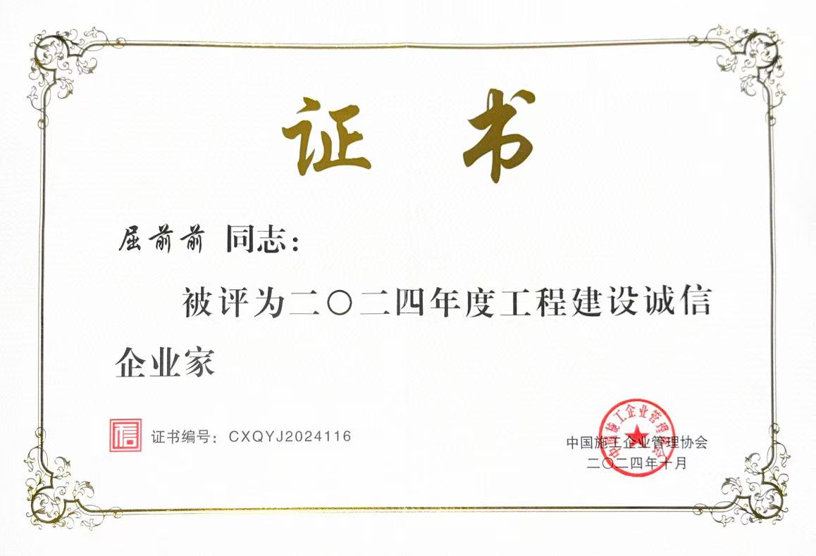 副總經(jīng)理屈前前被評(píng)為“2024年度工程建設(shè)誠信企業(yè)家”!